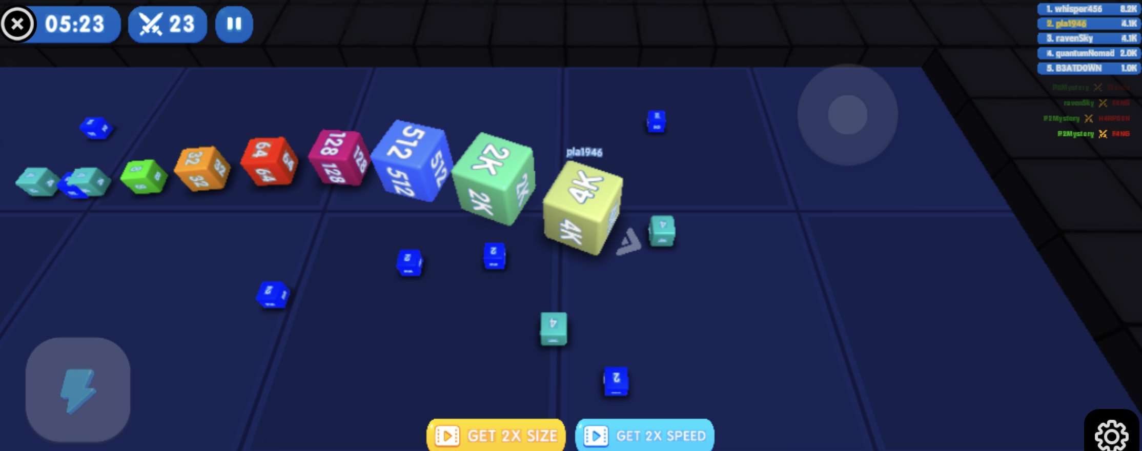 الميكانيكيات الكلاسيكية للدمج في لعبة 2048 اجتمعت مع أسلوب اللعب الإدماني في ألعاب الثعبان. سواءً كنت من عشاق الألغاز أو من محبي ألعاب الآركيد المليئة بالحركة، ستجد نفسك منغمسًا في تجربة مثيرة. نافِس بمفردك لتنمية ثعبانك وتحقيق أرقام أعلى والسيطرة على الساحة، أو اجلب صديقًا لمواجهة مباشرة. بفضل مزيج المهارة والسرعة والاستراتيجية، سيفوز أفضل ثعبان. طريقة اللعب: • اللاعب 1: الماوس أو الأزرار A و D مع النقر الأيسر أو زر المسافة. • اللاعب 2: الأسهم يمين ويسار مع زر Shift الأيمن. • يمكن اللعب عبر اللمس على الأجهزة المحمولة/الأجهزة اللوحية. لعبة Cube Snake 2048 هي لعبة ألغاز على الإنترنت اخترناها بعناية في موقع Lagged.com. تُعتبر من ألعاب الألغاز المفضلة لدينا على الهواتف. فقط اضغط على زر التشغيل الكبير لتبدأ المتعة. وإذا أردت المزيد من الألعاب المشابهة، جرّب Google Snake أو Snake Rush. تم تطوير اللعبة بواسطة Cursora Labs.