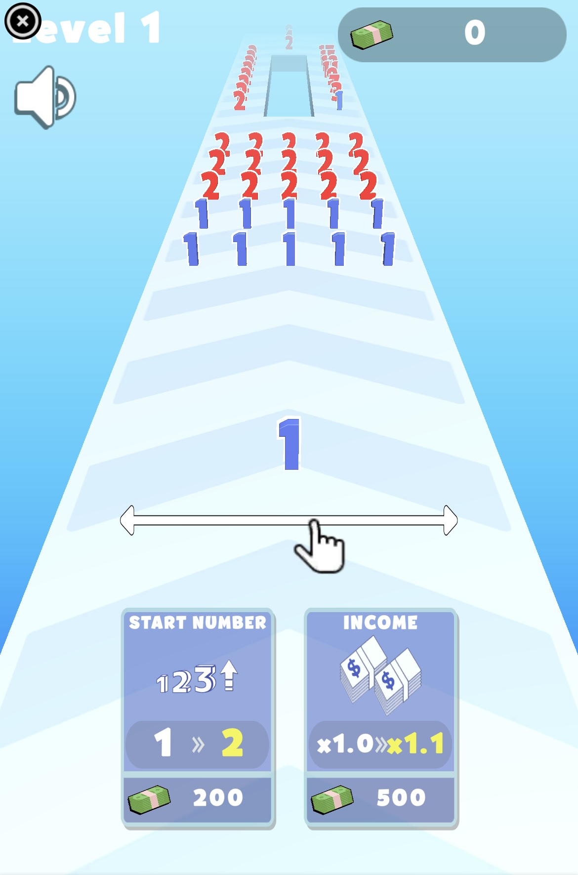 اجمع أكبر عدد وحطم جميع الجدران! اللعبة مناسبة لمن يرغب في الاسترخاء الآن. تحكّم برقمك أثناء التنقل بين العديد من المراحل، وتجنّب الاصطدام بالأرقام الأكبر، وامتص الأرقام الأصغر لتصبح أقوى. المراوغة بمهارة واختيار الطريق الأمثل سيساعدك على الوصول إلى خط النهاية وتحقيق أعلى النقاط. حان الوقت لاختبار سرعتك في رد الفعل وتفكيرك الاستراتيجي في هذه اللعبة الفريدة والممتعة! طريقة اللعب: • امتص الأرقام الأصغر منك (مظللة باللون الأزرق). • إذا واجهت رقماً أحمر أكبر منك، ستخسر رقمك وتبدأ من جديد. • تجنّب المناشير الكهربائية، واعبر الجسور بحذر. معلومات إضافية: لعبة Master of Numbers هي لعبة أكشن أونلاين مختارة من موقع Lagged.com، وتعد من ألعابنا المفضلة على الهواتف. لبدء اللعب، اضغط على زر التشغيل الكبير واستمتع. إذا كنت تبحث عن ألعاب مشابهة، جرّب Level Up Runner أو Temple Adventure. تطوير: Eccentric Games