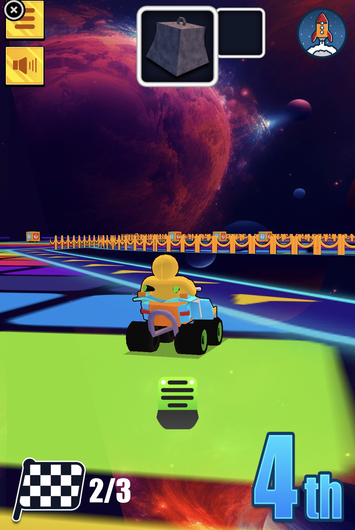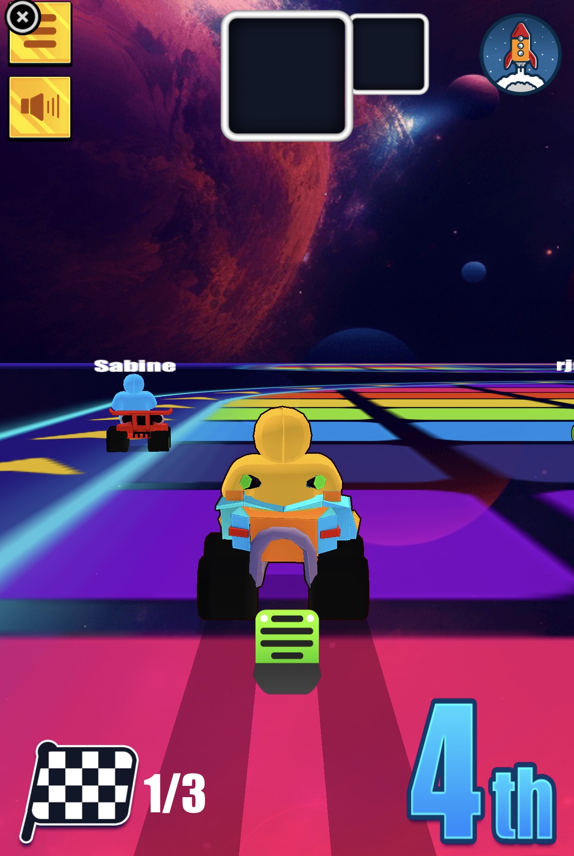 زوم! باو! فروم! أهلاً بك في عالم Boom Wheels العجيب، حيث سباقات الكارت لم تكن يوماً بهذه الروعة أو الجنون! استعد لتركب عربتك الخارقة وتنطلق بسرعة عبر أروع المسارات على الإطلاق. لعبة سباق أونلاين عالية الجودة تختبر ذكاءك وردة فعلك. طريقة اللعب: • الكمبيوتر: استخدم مفاتيح WASD أو الأسهم للتحرك. • اضغط على المسافة لاستخدام القوى الخاصة. • الجوال: المس يمين أو يسار الشاشة للتوجيه، اضغط على أيقونة الفرامل للتباطؤ، واسحب للأعلى لاستخدام القوى الخاصة. Boom Wheels هي لعبة أركيد أونلاين اخترناها بعناية على موقع Lagged.com، وتُعد من ألعابنا المفضلة على الهواتف المحمولة. فقط اضغط زر التشغيل الكبير لبدء المرح. وإذا أردت المزيد من الألعاب المشابهة، جرّب Ultimate Flying Cars أو Grand City Racing. المطور: Volkan