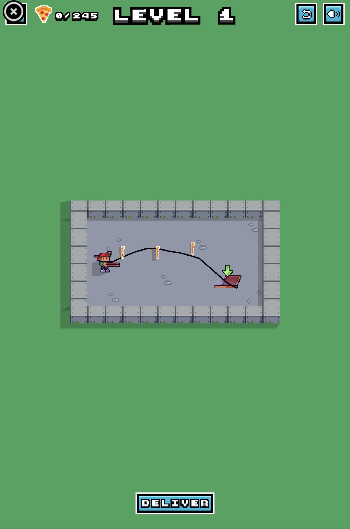 ساعد عامل توصيل البيتزا في توصيل البيتزا اللذيذة في الوقت المناسب في هذه اللعبة المضحكة المعتمدة على الرسم! أكمل كل مستوى عن طريق توجيه عامل البيتزا إلى باب الخروج. اجمع شرائح البيتزا على طول الطريق لزيادة رصيدك! يمكنك الاستمرار في الرسم، لذلك لست مضطراً لرسم طريق عامل البيتزا بالكامل مرة واحدة. طريقة اللعب: انقر أو اضغط للعب. لعبة Pizza Guy Puzzle هي لعبة ألغاز عبر الإنترنت اختارتها منصة Lagged.com بعناية. وتُعتبر من ألعاب الألغاز المفضلة لدينا على الجوال التي لا بد من لعبها. ببساطة، اضغط على زر التشغيل الكبير لبدء المتعة. وإذا كنت ترغب في المزيد من الألعاب المشابهة، فجرب Draw Master أو Draw Flights