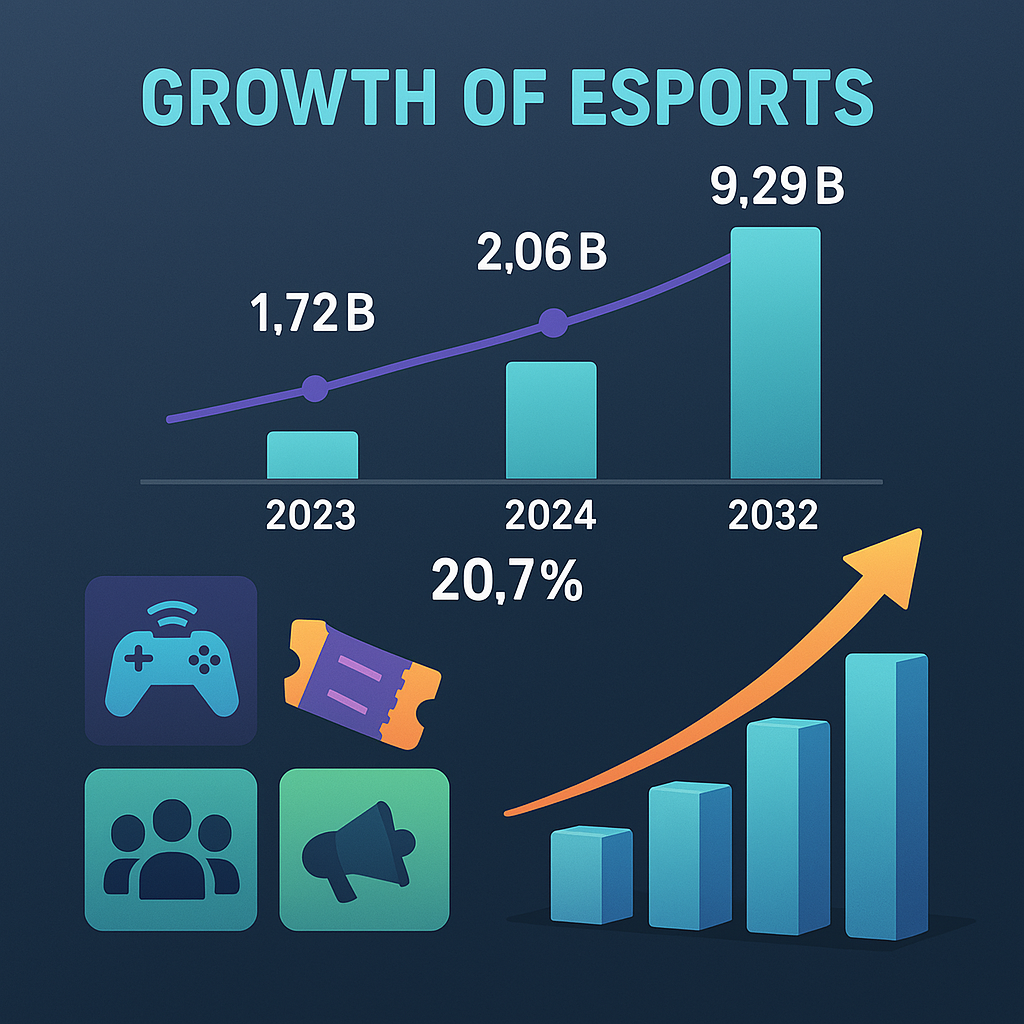 قُدر حجم سوق الرياضات الإلكترونية العالمي بنحو 1.72 مليار دولار أمريكي في عام 2023 ومن المتوقع أن ينمو من 2.06 مليار دولار أمريكي في عام 2024 إلى 9.29 مليار دولار أمريكي بحلول عام 2032 بمعدل نمو سنوي قدره 20.7% للفترة بين العامين وبلغت قيمة السوق في أمريكا الشمالية 500 مليون دولار أمريكي عام 2023 فيما تشير بعض التوقعات إلى أن إيرادات السوق العالمي في هذا القطاع ستصل إلى 4.3 مليار دولار خلال العام الحالي ويتلقى هذا السوق دعماً قوياً من الاتجاه المتزايد للبث المباشر لتلك الألعاب والاستثمارات في هذا القطاع إضافة إلى ارتفاع عدد المشاهدين ومبيعات التذاكر والطلب على البنية التحتية للبطولات الدورية لتلك الألعاب ما يسهم في نموه بشكل متصاعد خلال الآونة الأخيرة بحسب مجلة فورتشين السوق أيضاً يستفيد من فرص الإيرادات المتزايدة جراء ارتفاع المشاركين من اللاعبين والمنظمين والمؤثرين ومطوري الألعاب في وقت جذبت فيه الجوائز المالية للبطولات الدولية وفرص كسب الدخل المرتفع من تلك الرياضات العديد من محترفي الألعاب الإلكترونية لتلك البطولات خاصة من فئة الشباب وبلغت قيمة الجوائز في بطولة "فالورنت شامبنشيب" نحو 2.25 مليون دولار أمريكي وهي قيمة أعلى مما حصل عليها منتخبا إيران وكوريا الجنوبية مجتمعين حينما تأهلا للنصف النهائي في بطولة كأس آسيا 2024 ولم ينجحا في الوصول للنهائي خلال البطولة التي اختتمت في فبراير الماضي الأمر لم يتوقف عند هذا الحد إذ بدأت الكليات والجامعات في تقديم برامج مخصصة لتطوير مهارات الألعاب بين الطلاب فعلى سبيل المثال أعلنت جامعة سيراكيوز الأمريكية في مارس 2023 أنها ستقدم برنامجاً تعليمياً متخصصاً في الرياضات الإلكترونية ولا شك أن تفشي جائحة كورونا كان له دور مؤثر في زيادة الطلب على الألعاب عبر الإنترنت وتفاعل المستخدم مع الألعاب متعددة اللاعبين وشهدت إيرادات شركات الألعاب ارتفاعاً كبيراً خلال هذه الفترة حيث لجأ العديد من الأفراد إلى الرياضات الإلكترونية للترفيه مع انخفاض نشاط الأعمال بشكل كبير جراء قواعد التباعد الاجتماعي