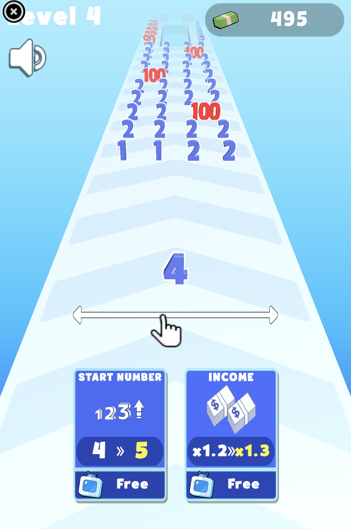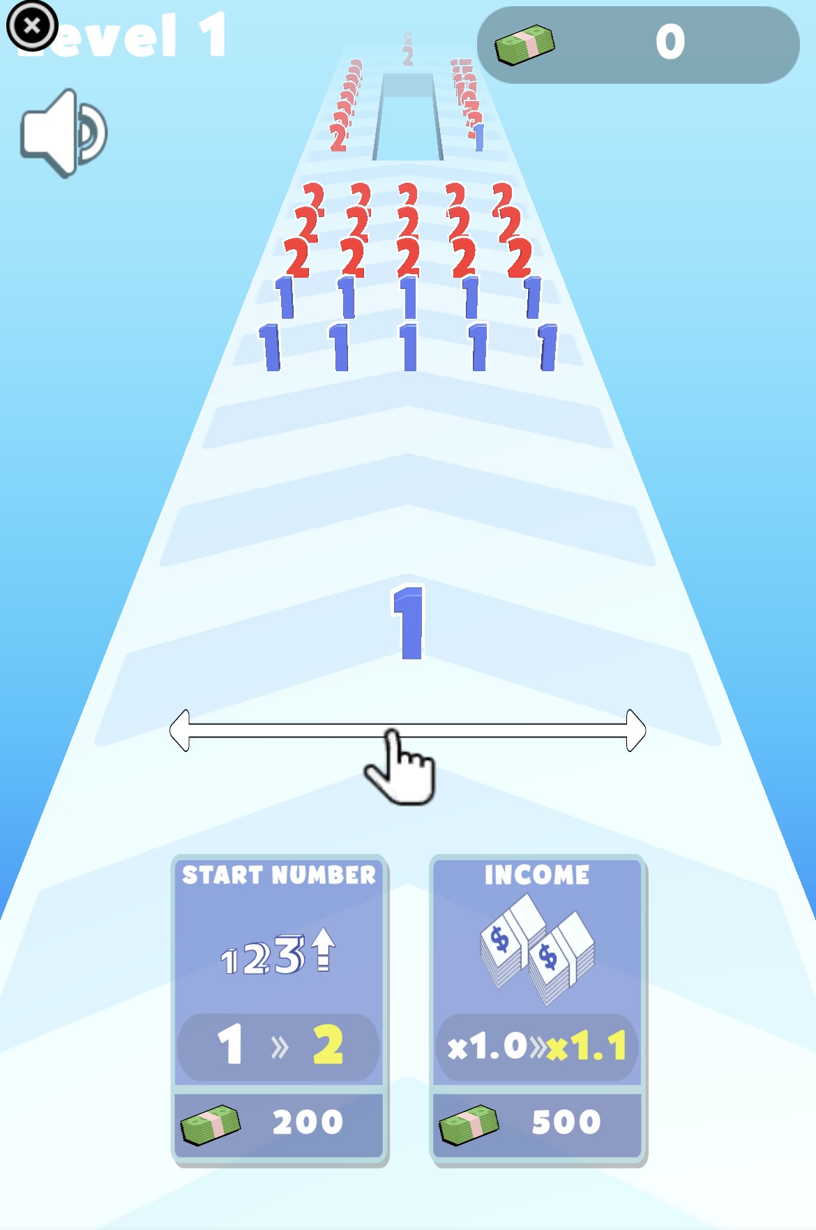 اجمع أكبر عدد وحطم جميع الجدران! اللعبة مناسبة لمن يرغب في الاسترخاء الآن. تحكّم برقمك أثناء التنقل بين العديد من المراحل، وتجنّب الاصطدام بالأرقام الأكبر، وامتص الأرقام الأصغر لتصبح أقوى. المراوغة بمهارة واختيار الطريق الأمثل سيساعدك على الوصول إلى خط النهاية وتحقيق أعلى النقاط. حان الوقت لاختبار سرعتك في رد الفعل وتفكيرك الاستراتيجي في هذه اللعبة الفريدة والممتعة! طريقة اللعب: • امتص الأرقام الأصغر منك (مظللة باللون الأزرق). • إذا واجهت رقماً أحمر أكبر منك، ستخسر رقمك وتبدأ من جديد. • تجنّب المناشير الكهربائية، واعبر الجسور بحذر. معلومات إضافية: لعبة Master of Numbers هي لعبة أكشن أونلاين مختارة من موقع Lagged.com، وتعد من ألعابنا المفضلة على الهواتف. لبدء اللعب، اضغط على زر التشغيل الكبير واستمتع. إذا كنت تبحث عن ألعاب مشابهة، جرّب Level Up Runner أو Temple Adventure. تطوير: Eccentric Games