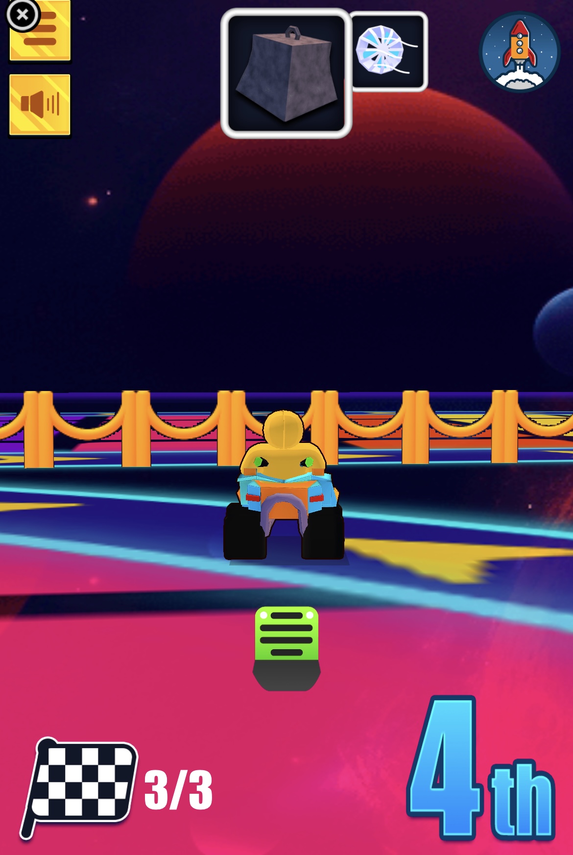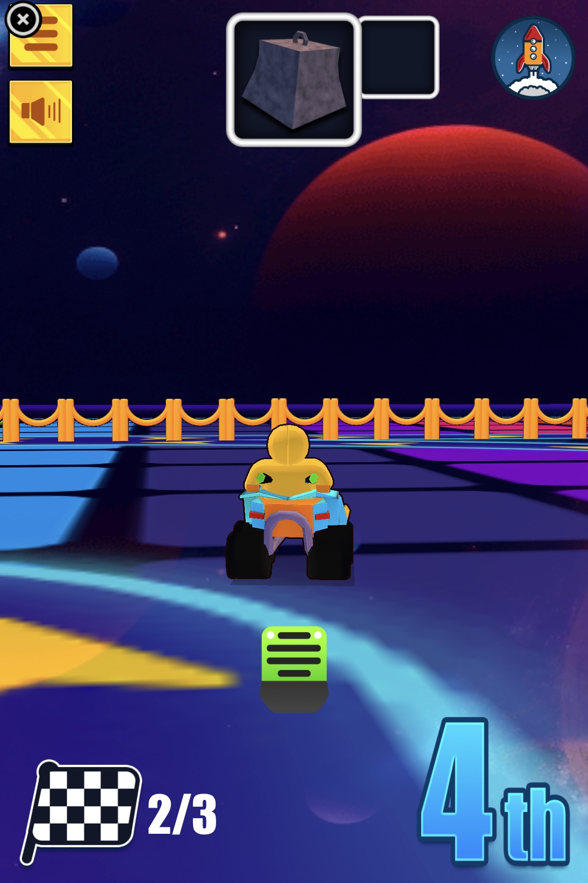 زوم! باو! فروم! أهلاً بك في عالم Boom Wheels العجيب، حيث سباقات الكارت لم تكن يوماً بهذه الروعة أو الجنون! استعد لتركب عربتك الخارقة وتنطلق بسرعة عبر أروع المسارات على الإطلاق. لعبة سباق أونلاين عالية الجودة تختبر ذكاءك وردة فعلك. طريقة اللعب: • الكمبيوتر: استخدم مفاتيح WASD أو الأسهم للتحرك. • اضغط على المسافة لاستخدام القوى الخاصة. • الجوال: المس يمين أو يسار الشاشة للتوجيه، اضغط على أيقونة الفرامل للتباطؤ، واسحب للأعلى لاستخدام القوى الخاصة. Boom Wheels هي لعبة أركيد أونلاين اخترناها بعناية على موقع Lagged.com، وتُعد من ألعابنا المفضلة على الهواتف المحمولة. فقط اضغط زر التشغيل الكبير لبدء المرح. وإذا أردت المزيد من الألعاب المشابهة، جرّب Ultimate Flying Cars أو Grand City Racing. المطور: Volkan