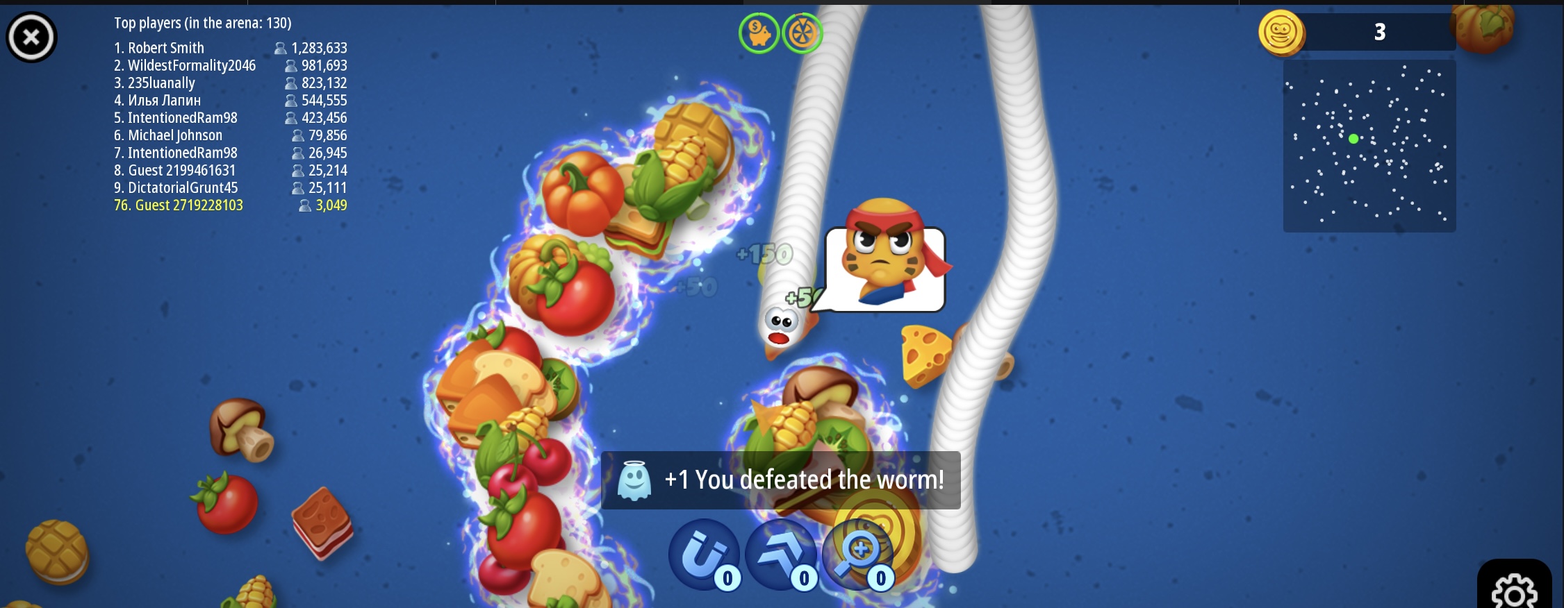 ادخل إلى Worms Zone في هذه اللعبة المذهلة المبنية على أسلوب .io! مع وجود ثلاث وضعيات لعب مختلفة للاختيار من بينها، لن تشعر بالملل أبدًا في عالم Worms Zone! قم بجمع الطعام لتكبير حجم الدودة الخاصة بك. اجمع التعزيزات لزيادة قدرات دودةك. تجنب الديدان الأكبر حجمًا وإلا ستخسر اللعبة! طريقة اللعب: استخدم الفأرة أو اللمس للعب. لعبة Worms Zone a Slithery Snake هي لعبة آركيد أونلاين اخترناها بعناية لموقع Lagged.com. وهي من بين ألعاب الآركيد المفضلة لدينا على الهاتف المحمول والتي نحب لعبها. ما عليك سوى الضغط على زر التشغيل الكبير لبدء المرح. وإذا كنت تريد ألعابًا مشابهة، فجرب Killer.io أو Table Tug Online