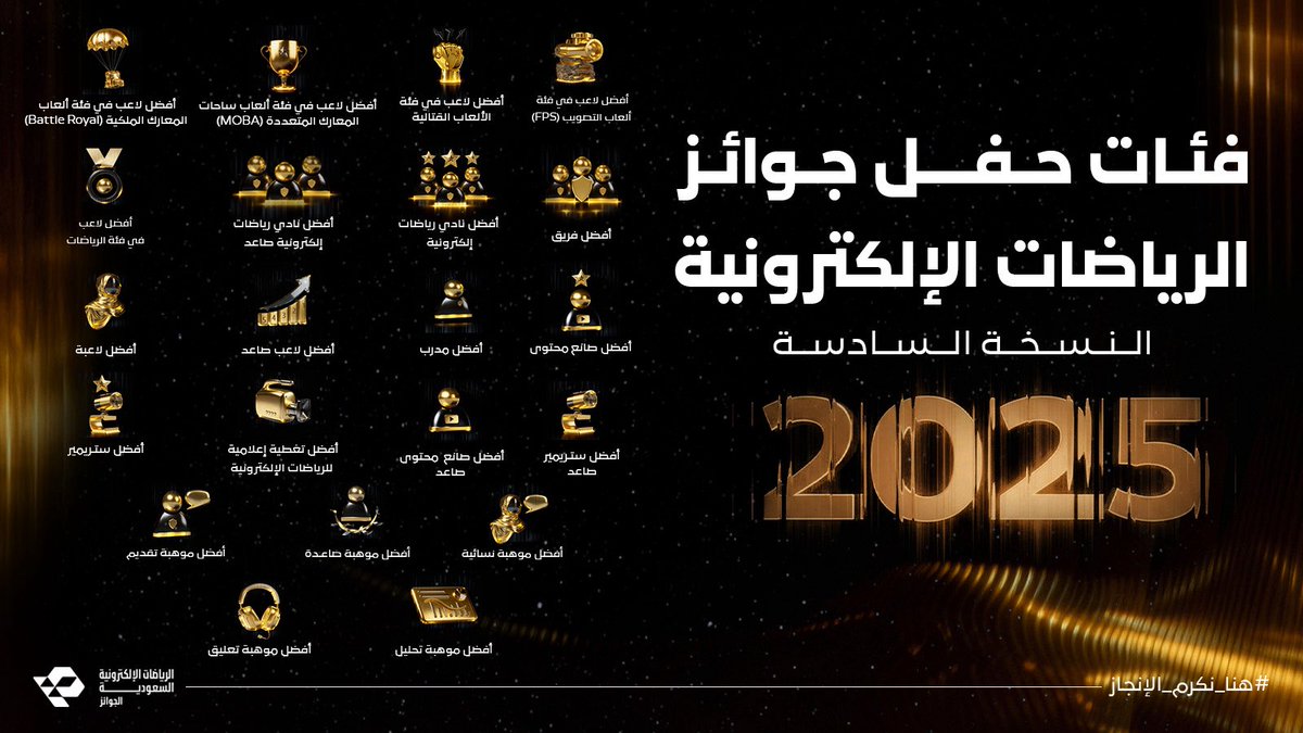 حفل جوائز الرياضات الإلكترونية 2025 ينطلق قريبًا في السعودية
