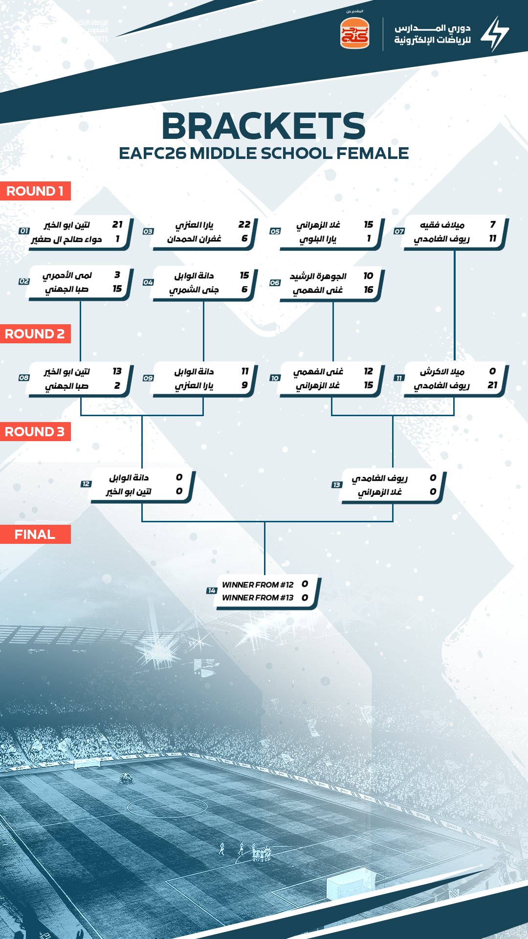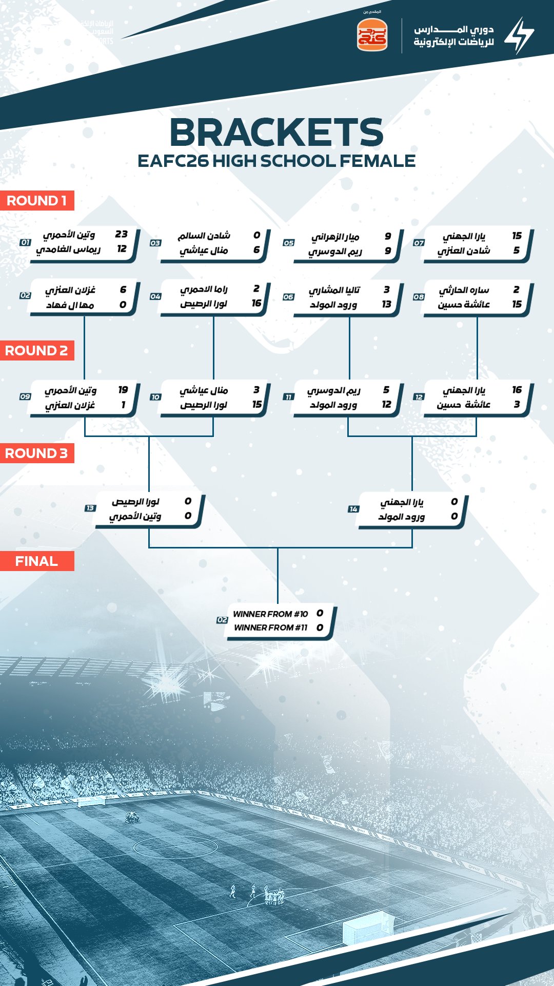 | 10 ديسمبر 2025 | 19 ديسمبر 2025 | الاتحاد الدولي لكرة القدم الإلكترونية (FIFAe) بالشراكة مع الاتحاد السعودي للرياضات الإلكترونية (Saudi Esports Federation) | عرض الموقع علي الخريطه | عرض |